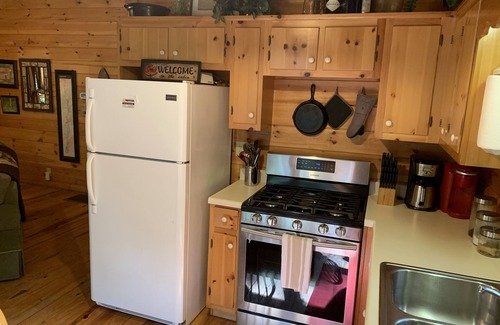 FernHollow is a private log cabin on a stocked trout stream 11 miles from Murphy, NC. Large front porch where you can listen to the creek from your rocking chair or you can enjoy a fire creekside in the Adirondack chairs. Easily accessed from a paved road... no 4WD required. Convenient to the Cherokee Valley River Casino in Murphy or countless waterfalls and hiking trails. Well-behaved dogs are welcome with a $110 pet fee. Limit 2. Cats are not allowed.