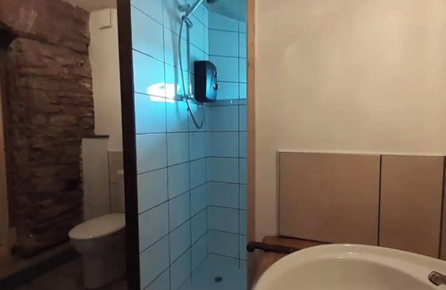 A modern bathroom with hot water, shower, and flushing loo are 20 meters from the yurt, which is private for your sole use for the duration of your stay (as are all of the facilities described here). The small kitchenette also has a washing up sink, hot water, a kettle, toaster, and kitchen essentials. There is an outdoor cooking area with a campfire grill for BBQ or campfire cooking, and a separate covered seating area with a camping electric oven and hob.