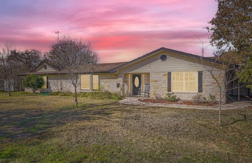 Located just minutes away from Circuit of the Americas and the Austin Airport, yet a world apart in its peaceful ambiance, our property provides a haven for relaxation and exploration alike. Stroll through 15 acres of sprawling landscapes including a pond, guests can unwind in the embrace of nature while still enjoying modern comforts and amenities. If you want to see more animals than the occasional deer wandering through the property, the Capital of Texas Zoo is only 1 mile away.