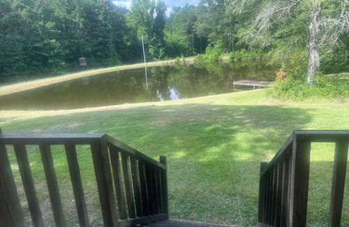 Get ready to relax in this 2-bedroom cabin in Utica. This delightful property offers a cozy retreat for guests. Enjoy use of our fifty wooded acres with plenty of turkey, squirrels and white tail deer. The bedrooms feature 1 king bed upstairs in the loft with a smart tv and its own full bath featuring a standard tub and shower. Downstairs you’ll enjoy one easily accessible 1 queen bed bedroom, with a television ensuring a comfortable night's sleep. Downstairs also includes one full bathroom, with a double jetted bathtub, you can indulge in a soothing soak after a day of exploring. The living room provides additional space with a sofa bed and television, perfect for lounging or accommodating extra guests. Amenities such as a hair dryer, washing machine and dryer, WiFi, and AC / heat are all provided for your convenience. Enjoy nature trails on the property or fish in our acre and a half pond stocked with bass and bluegill. You're sure to make fantastic memories with a stay at our place.