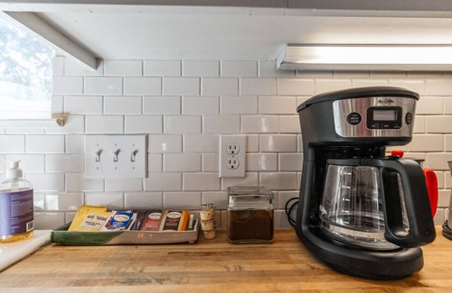 The property is on one acre and the little house is surrounded by large trees and is secluded from the main house. The little house was built in 2017 and has a dedicated bedroom and bathroom. The kitchen and living room is open and feels very spacious. The house is 480 sq ft and includes everything one would need for a long-term stay. The porch is a great place to enjoy your coffee in the mornings while you watching the deer and birds nearby.