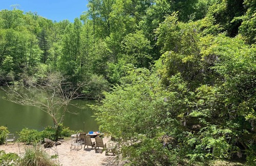 Located in the foothills of the Blue Ridge Mountains, just south of Charlottesville (about 20 minutes) you will find this beautiful, hand built 3 story lake side log cabin. You'll fall in love with this little slice of heaven nestled in the woods on our 300 acre family farm. For a real twist, we've designed our mountain getaway to include a white sandy beach with tropical banana trees that grow in the summer. Swim in the lake and enjoy our floating dock. ALSO Located right on the farm is WOOD RIDGE FARM BREWERY and our FIRED UP FOOD TRUCK and wood fired brick pizza oven. The brewery boasts the largest LOVE sign on the east coast, a golf driving range, volleyball, corn hole, and other outside activities.