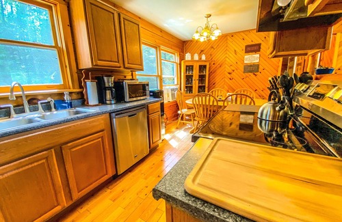 The expansive and plentiful windows and golden pine interior create a warm glowing atmosphere to enjoy with your friends and loved ones. The home offers a dining room, fully equipped kitchen, and three bathrooms, as well as four cozy sleeping spaces and a large game and workout area for activity and fun. Clean and comfortable with all the conveniences.