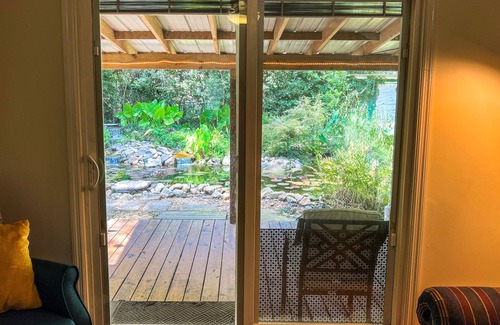 Note: Due to the nature of caring for the Koi pond my mother has to stop by to check the pond skimmers for leaves and other blockages, ensure the water pumps are working properly, and feed the fish. This typically only takes about 5 minutes and no access to the house is needed. There is also an 18 year old cat that has lived at the house that she feeds.