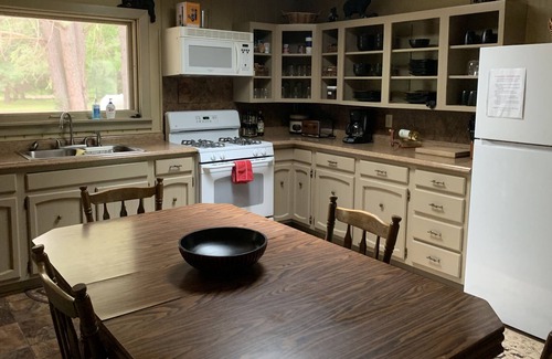 A truly relaxing cabin retreat in Michigan's Upper Peninsula. For all of the outdoor enthusiasts and sightseers, a four seasons private getaway. Cabin is located right on the Presque Isle River. Kayak/fish in the summer. Snowmobile/ATV trails are a stone's throw away. Close to ski resorts, Porcupine Mountain State Park, numerous waterfalls and hiking trails in the Ottawa National Forest. Or just relax next to the fire pit and take in the view of the river. Perfect cabin for groups and families. Cabin has all the amenities and decorated in a Northwoods theme. Relax by the fireplace in the knotty pine rustic living room and enjoy the gorgeous views of the river outside. Step into the large bar area featuring foosball and hockey game tables. Walk out onto the back deck and build a fire in the firepit near the river. Inside there are 3 bedrooms. Main bedroom has a king size bed. Off of the kitchen, a second bedroom with a queen and a full size bed. The third bedroom features 4 custom made bunk beds. Kids will love these. Full kitchen with everything you will need. There is a washer and dryer as well.