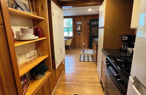 Updated and sits right near the water with its own dock, deck and fire pit. Sleeps 6 with new bathroom, shower and washer dryer! Can be rented with the big house or separately. Includes the use of kayaks, canoe, and paddle boat. Pontoon and fishing boat available for rent. One pet is allowed but please see the pet fee. This is a seasonal cabin May-Oct