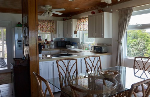 Clothes washer and dryer, iron and ironing board, refrigerator with ice maker, air fry electric range with oven, dishwasher, garbage disposal, microwave oven, toaster, toaster oven, coffee maker, bread maker, blender, gas BBQ grill, dishes/utensils(service for 12), pots, pans, etc., 100 plus book library. Sand chairs, hammock. TV, DVD and VCR(sorry, no cable or satellite dish), a selection of movies in DVD and VCR tapes. High speed Internet & WiFi. 4 one-person kayaks and 1 two-person kayak and life jackets that are provided and required for kayak use. Bone fishing guide information available.