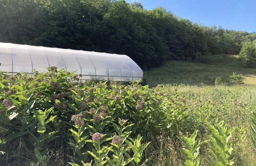 Nestled in a rural valley, it's close to skiing, mountain biking, kayaking or excellent restaurants. Wildwood Farm is 26 acres of farm and forest land. Explore the forested hillside trails, or spend your days building stone creations in the stream beneath your window.