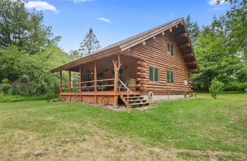 Absolute seclusion in this beautiful log cabin with cathedral ceilings. 1.5 miles of trails wind through apples trees, grassy fields, ponds, thick brush and dense woods. Setback 300 feet from the road with no other visible homes you will feel the privacy and peace of mind immediately.