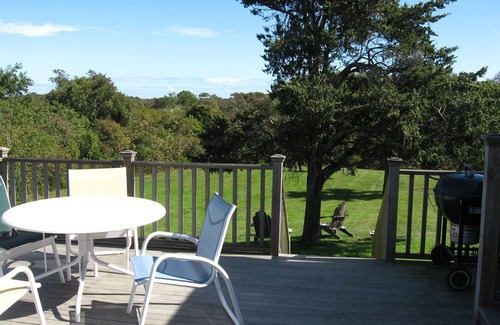 The cottage sits on its own 10 ACRES of privacy. The kitchen is fully equipped. There are 3 large sundecks for sunbathing, relaxing, or having sunset cocktails with family and friends. There is a gas/charcoal grill that is great for “dining out”. The cottage sleeps 6 in 3 bedrooms, 2 Queens and 1 with 2 twins. In addition to the 3 bathrooms there is an enclosed outside shower as well. For those of you who need to stay connected, there is tv, Internet and phone. Quidnet Beach and the entrance to Great Point are only minutes away. Siasconset is three miles and the town of Nantucket is seven miles away. There is a shuttle bus stop nearby, and the bike path goes to both Siasconset and Nantucket. If you have a car, there is plenty of space to park. There is a very large yard perfect for playing games like vollyball, baseball, tag football, or fetch with the family dog.