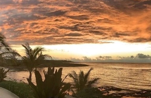 Relax on the expansive pool deck, unwind under the shaded gazebo, or take in panoramic ocean views from every room of the house from virtually every angle. Facing due south, the villa offers breathtaking sunrises and sunsets, and you might even spot a cruise ship passing by. Snorkel in the reef-protected waters of Half Moon Bay, just steps from your door. Our adjacent sandy lot enhances both privacy and space, creating a virtually private beach experience.