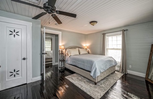 This posh guest house has 2 bedrooms, each with queen beds and a sleeper loveseat in the living room. 1 1/2 baths with a kitchen and is perfect for groups of 2-5. This guest house can be rented separately or can be rented together with the main house (763365). Please check with the owner for availability. The living space is upstairs with the kitchen and half bath downstairs. If the guest house is rented together with the home, the guest house could be a perfect place to get away from the rest of the group if needed.