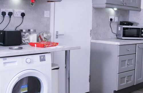 New refurbishment. Off-street and free parking (2 large vehicles) outside front door + security lights. Very large, fenced and locked rear garden with two well-lit patios, bbq, and lawn. 2 SMART TVs. Dedicated Netflix account+100mb wifi