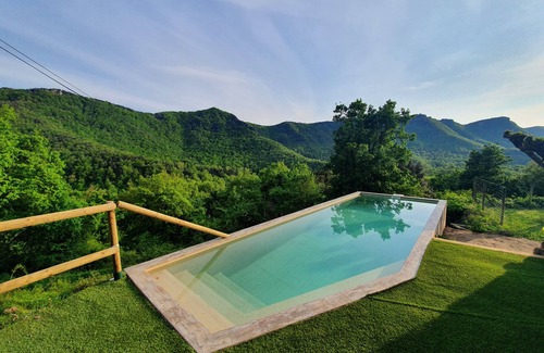 Mas La Costa is a rural house with capacity up to 16 people located in the middle of the Natural Park of the Volcanic Zone of La Garrotxa. The house is located in the top of a small hill with spectacular views of La Fageda d'en Jordà, the Eastern Pyrenees and the Serra del Corb.