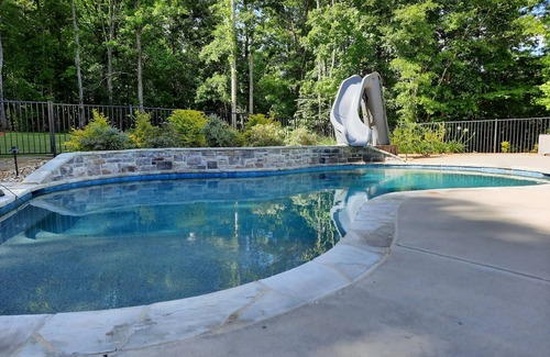 In ground swimming pool with slide.