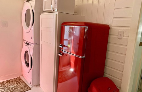 Complete Brand New Remodel of Long-Time Nauvoo Family's Home. Sweet and Tastefully done in whites and reds. All new plumbing and finishes in the bathroom and kitchen. This home is within walking distance to the Temple, Post Office, City Park and all the wonderful shops on Mulholland! New beds, linens, and towels will assist in a comfy stay. New Stackable Washer and Dryer in kitchen. Smaller size range and dishwasher, microwave, new fridge. There is one bedroom with 1 Queen; one bedroom with 1 Queen & 1 Twin Bed; and a futon sofa for an extra (not the best for long-term sleeping unless for a child). NO TAXES required on 30-days or longer rentals! Well-behaved dog upon approval for extra $100/month. One dog maximum.