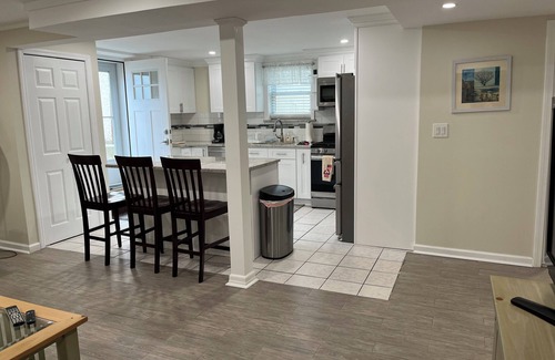 - BOOK NOW for September and winter rental.. New living room furniture just added.Brand new, beautiful BEACHSIDE two bedroom, one bath apartment with private entrance four blocks to the beach! This rental is a brand new apartment with central air conditioning, washer, dryer, private outdoor space. The sleeping accommodations are for four people with 4 beach passes, chairs, umbrella included as well as a gas grill for cooking included.