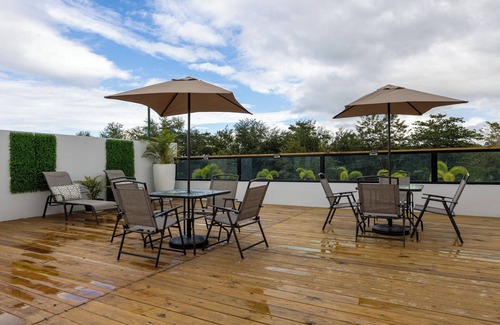 Newly built Villa with 7 hotel like suites each with its own private bathroom featuring a spacious relaxing rooftop with 2 hot tubs. A cozy and comfortable room equipped with all the amenities. Private parking, washer & dryer and much more. Located in Prime Location – 10 minutes from San Juan Airport, 10 minutes from Carolina Beach, 5 minutes from the mall and shopping. A modern retreat designed for comfort, elegance and unforgettable experiences.