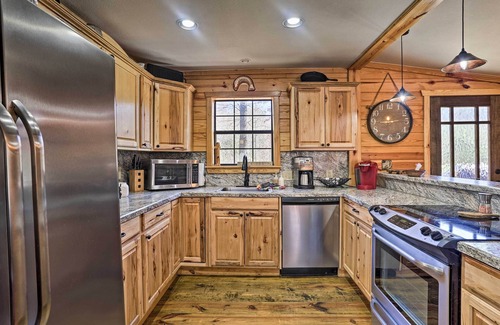 Experience the serenity of Ouachita National Forest when you stay at 'The Cabin at Three Waters.' This idyllic 5-bedroom, 4-bath Big Cedar-area vacation rental boasts a guest cabin and Kiamichi River access for kayaking and fishing, stainless steel appliances in the kitchen, and 2 furnished decks. Top off a day meandering Talimena Drive in Winding Stair Mountain National Recreation Area or exploring Broken Bow and Hochatown by gathering around the fire pit or stargazing from the sky deck!