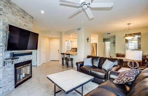 The condo complex is designed with a blend of modern and Southwestern architectural elements. Earthy tones and desert landscaping create a harmonious connection with the natural beauty of the region. The grounds are adorned with native desert flora, offering a warm and inviting welcome to residents and guests.