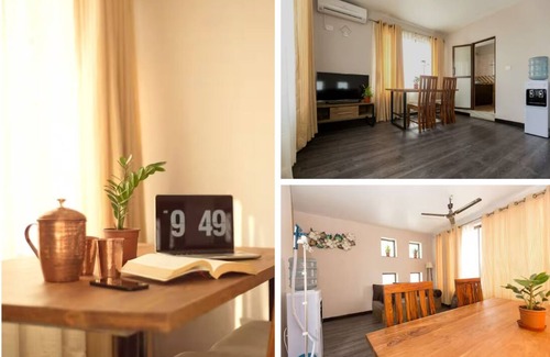 Welcome to Bakhundole Heights! Our modern one-bedroom apartment is a haven of light and air, meticulously designed to enhance your experience with its open and welcoming layout. As soon as you step inside, you'll find yourself in a spacious common area that merges the living room, dining area, and kitchen into one cohesive space. This arrangement ensures that, whether you're preparing a meal, engaging in conversation, working at the dining table (which also serves as an efficient work desk), watching TV, or enjoying board games, you'll feel connected and involved.