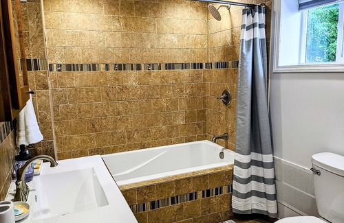 -Choose to bathe in the large soaking tub or enjoy the rain shower-head instead.