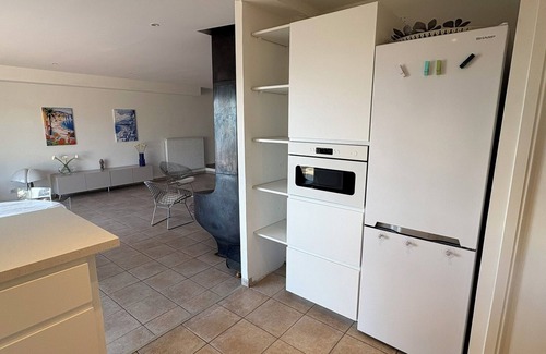 The kitchen is fully equipped: dishwasher, oven, microwave, coffee machine Nespresso, toaster, boiler, raclette machine, mixer, some first groceries.