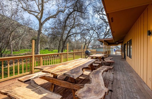 Your dream riverside escape awaits! This 4-bed, 2-bath home on 3.24 acres features a charming lodge, private riverfront access, and breathtaking natural beauty. With four beautifully appointed bedrooms, this home comfortably sleeps 16 but can accommodate up to 24 guests with the use of sofa beds. This serene retreat offers peaceful mountain living just minutes from Sequoia National Park!
