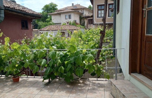 This detached 3 bedroom family house has the advantage of being located in the heart of the historical reserve Old Town of Plovdiv and at the same time in the very centre of the modern city.Convenient and suitable for families and groups of up to 9 people, guests will have the privilege of enjoying the peace and quiet of the old town while all the attractions and interesting sights of the buzzing city are within a walking distance. Guests would have at their disposal the cosy courtyard covered by the green canopy of the vines and the large terrace of the house overlooking the magnificent architecture. Most guests reffer it as"an oasis of serenity".