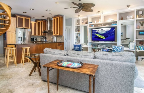 Escape to island paradise at this stunning 2-story vacation rental property in Key West. Nestled in a quiet community, this tropical oasis offers a water view and dock accessibility, allowing you to immerse yourself in the tranquil surrounding. Boasting 2 bedrooms, 2.5 bathrooms, and an open-plan living area, this property is perfect for families or groups of up to 4 guests. The chef-inspired kitchen is fully equipped with top-of-the-line appliances, ample counter space, and a perfect setting for culinary adventures. The living area is cozy and airy, providing the perfect ambiance for relaxation and socializing. Upstairs, the beautifully appointed bedrooms offer ample space for rest and privacy, and each has its own private bathroom with a luxurious walk-in shower. A dedicated office space is also included for those working remotely. Guests will have exclusive use of the property's private dock, invoking feelings of serenity and perfect for sipping morning coffee or enjoying sunset drinks. The community pool is also available for your enjoyment. With easy access to downtown, this tranquil retreat offers the best of both worlds. Don't miss the opportunity to escape to this island paradise and immerse yourself in the tranquility of Key West.