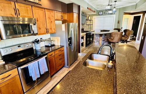 The property also has a washer/dryer, flat screen smart TVs in each bedroom, the loft, bar, and living room, a wood-burning fireplace in the family room, a gas fireplace in the master bedroom, and completely updated bathrooms with walk-in showers. The completely updated deck is private and opens to a spectacular view of the night sky, equipped with a brand new private hot tub, Jenn-Air gas grill and all of the grilling tools you'll need.