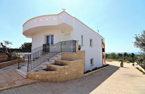 SH-Salento Villa Bianca is located in Torre San Giovanni and is an elegant modern residence located on a small hill between Torre San Giovanni and Torre Mozza, immersed in the Mediterranean scrub and 2000 meters away from the wonderful, golden sandy beaches of the Ionian coast. The house fits perfectly with the aesthetics of the landscape, characterized by majestic centuries-old olive trees and typical Mediterranean plants that adorn the well-kept surrounding garden.