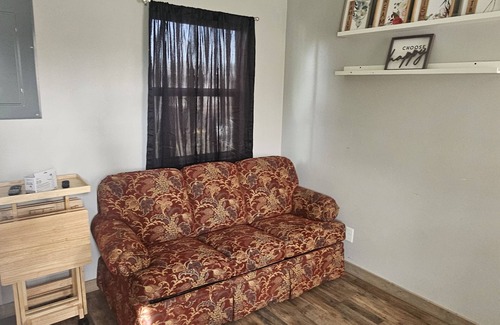 Located in Cape Fair, this cabin is a dream. Nestled in a serene setting, guests can unwind in the awesome bedroom featuring a king bed. The soothing bathroom offers a relaxing shower. With a cozy living room and a sofa bed for additional space, this retreat is perfect for a peaceful getaway. We look forward to hosting you at our place.