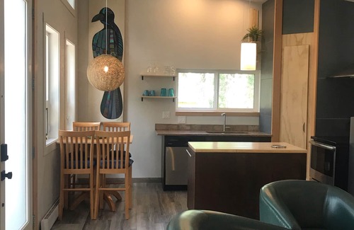 The Raven Cabin is a single story 2 bedroom 1 bathroom cabin set in the forest on a quiet country road. Creek side, there is nothing to disturb your tranquility. Except the wildlife! In our local Boreal forest we have 3 types of owl that you will hear , but may not see and at least 6 types of woodpeckers, who aren't shy! Pine martens, deer and all sorts of small forest critters live in the forest surrounding the chalet.
