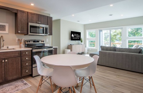 The great room itself has an open floor plan that will be the envy of the lake. The main living area provides comfortable seating to relax and enjoy the views or cuddle up on the couch and watch TV after a long day on the water. This gathering spot is likely to become your favorite room regardless of whether you're sipping coffee in the morning, or toasting the day with your new favorite Finger Lakes brew at sunset.