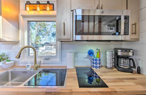 Live large in a tiny home in Daingerfield. This 1-bedroom, 1-bathroom vacation rental is small in size but comes equipped with everything you need for a stress-free lake vacation including in-unit laundry and a full kitchen. Step outside after your morning cup of coffee and walk right to the shore of Ellison Creek Reservoir where you can spend days boating or borrow a kayak to explore the area. At the end of another great day, grab a cold one and watch the Texas sun set over the water.