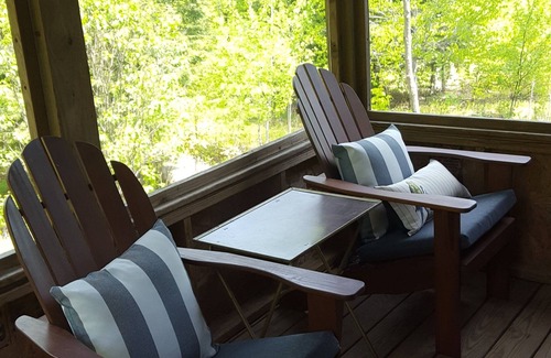 The King Master BR and guest BR (3 twins) are on 1st floor along with a fully equipped kitchen, spacious living room with large wood burning Fireplace. A Full Bath with both Jacuzzi and shower and half bath Powder/Laundry Room is also conveniently located on first floor. The fully equipped kitchen has 3 stools at the kitchen island and the dining area has 6 chairs. The large outside deck located off the Living Room has outdoor seating, a hot tub, a farm table with seating for 8 and a gas grill w/propane. There is a seasonal screened-in porch on main level for inclement weather.