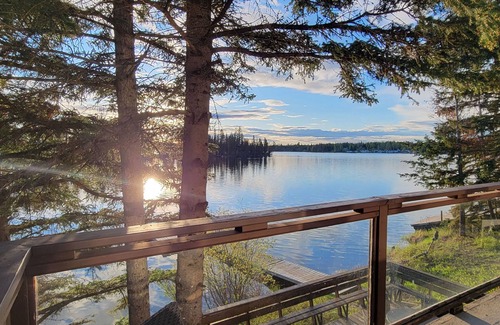 The lake has excellent fishing and is renowned for its well-stocked and large rainbow trout. In the evening enjoy the spectacular sunsets from the decks or sit around the fire pit at the beach roasting marshmallows (when local fire restrictions not in effect).