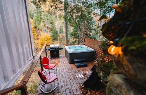 Best-rates for the Shipping Container Cabin starts from $619 per night with includes Hot Tub, TV, Sports/Activities, Bedding/Linens, Wellness Facilities, Child Friendly, Internet, Air Conditioner, Parking, Balcony/Terrace, Fireplace/Heating, Kitchen, Pet Friendly, Security/Safety, Barbecue/Outdoor Cooking, Laundry, Entertainment with all other facilities. Vacation Cottage™ provides a diverse array of lodging choices for every kind of traveler. We aim to pair each traveler with their ideal cabin, resort, or rental, ensuring a pleasant and satisfying stay with all necessary amenities.