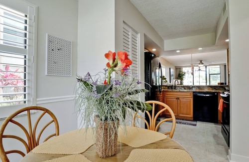Very nice decorated sunny and cheerful, ground floor, lake view end unit with 2BR/2 BA, 5 min from IMG Academy, close to the Beaches Anna Maria Island and Longboat Key. Condo overlooks two tranquil lakes. Open up the screen doors and enjoy the breezes flowing throughout this peaceful location. The complex features 2 heated Pools, 2 Jacuzzis, 2 Tennis/Pickleball courts, Basketball , Playground, Shuffleboard, Ping Pong, Billiard, BBQ. The property is close to all Shops, Restaurants, Bars ...