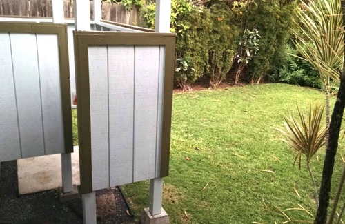 Aunty Lydia's is a great place to enjoy the mountains both from the living room windows and from the carport/lanai. Since there is plenty of room to park in front of the house in the yard, many choose this area as the eating & hang out spot. There is an outside table and chairs for al fresco meals.