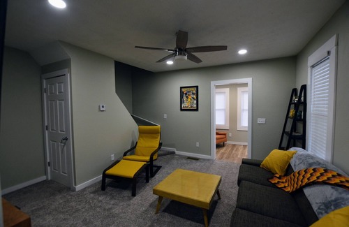 Escape to this charming 2-bedroom home nestled in the heart of Kent, Ohio, just a stone's throw from the scenic Cuyahoga River and the vibrant downtown district. This cozy retreat offers a tranquil interior designed to melt your stress away. Rest easy on plush queen-size beds in both bedrooms, ensuring a peaceful night's sleep for all.