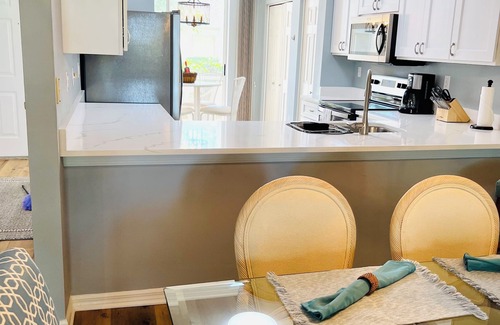 Rare.... available for entire Jan-Apr season due to medical cancellation. Experience the white sand of Siesta Key Beach in your toes without traffic and the cost. Lovely quiet updated condo on the ground floor at Stoneybrook Golf and Country Club only 15 minutes away from one the most pristine beaches in the US with us providing beach chairs and towels. Wine and dine on the waterfront. Front and rear lanais provide private ambiance that varies with your mood with views of a luscious golf course and nature preserves. Near 5 courses, one can get a tee time on one of them. Located on the Legacy Trail (look it up) , a bike path from Venice to downtown Sarasota and we provide the bikes. You bring the helmet. Nature paths, close in shopping (Costco) with restaurant and bar available at nearby clubhouse open to the public. Beach activities include surfing, kayaking, boogie boarding, shark teeth collecting and more....Heated pool, tennis, and pickleball are outside your door......all you need is to bring your own sunscreen. Rent for 6 months and get a discount. Contact owner for details.