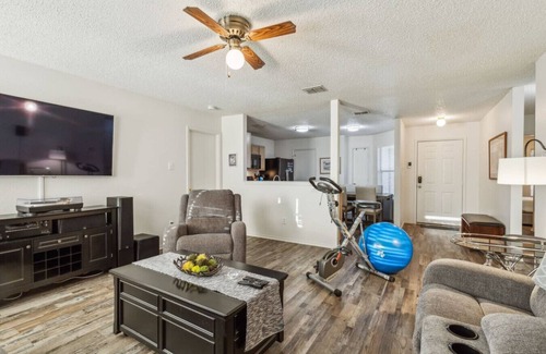 Fully equipped kitchen, smart TV, reclining sofas, in-unit laundry, high-speed WiFi, exercise bike, and board games.