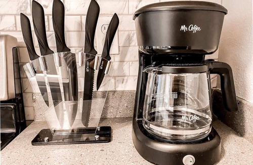 The fully equipped kitchen has all the necessities you need to prepare delicious meals. There are amenities such as a fridge, freezer, microwave, stove, toaster, and dishwasher at your disposal. You’ll also find a coffee maker. Feel free to use the complimentary coffees, creamer, sugar, and assorted teas throughout your stay.