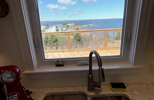 Sinclair Island Beach House on the cliff. Listen to the waves while you relax and watch the eagles and wild life in this private property with the best sunsets of the Northumberland Strait. Enjoy the huge outdoor deck and gather at night around the propane fire pit. Enjoy the amazing indoor shower or outdoor shower and use as much solar generated hot water as you desire. This beautiful home has been completely redone and is brand new on the market for 2024. You will fall in love with this gorgeous kitchen, spectacular tile/glass shower with 6 controls (body washers, rain overhead shower controls with light). The deck is wrap around with full water view. Everyone who comes to this view is mesmerized.