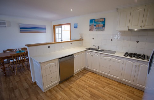 * Open plan dining/living area and kitchen with fridge, microwave, toaster and dishwasher