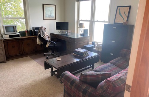 Bring your pet to this beautiful lake house which sits DIRECTLY on Skaneateles Lake, one of the most crystal clear lakes in the United States. We work on the "honor" system and believe in trusting folks so we don't charge a pet fee. The home has large picture windows with a stunning view of the lake and the majestic cliffs on the eastern side. It is 4 bedrooms and 2 and 1/2 baths with a fully renovated kitchen, a screened-in porch, central heat and air, and a fireplace. It has a fully equipped office where you can work remotely, if needed. The home has an outdoor gas grill, fire pit, and screened-in porch for outside dining. There's ample pristine waterfront for swimming, kayaking and paddle-boarding directly from the shore of your home (two kayaks, paddle board, and canoe provided). If you want to bring a boat or rent one at the Skaneateles Marina, there's a slip and cleats to secure your boat. Enjoy a fire at night in the firepit on the lawn by the lake under a million stars. You can also tour one of the nearby wineries and have dinner in the picturesque village of Skaneateles. People from all over the world come just to visit the charming village of Skaneateles with its cute shops, gorgeous architecture, and wonderful restaurants. In autumn, the lake is "on fire" with the color from the gorgeous fall leaves. Bed situation: A set of twin beds on the second floor; a queen bedroom on the second floor; and a king bed in the master on the first floor. Then, you take an interior staircase down to the original part of the house where you'll find a set of twin beds. You can walk out directly onto the dock from here and there is a rocky beach to your left leading into the lake. At night, you can open the windows and hear the waves lapping the shoreline. Skaneateles is a very peaceful and beautiful place.
