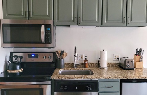 **Our fully equipped kitchen has a mini fridge/freezer. Please keep that in mind when shopping prior to arrival. We recommend bringing a cooler if you need extra space.