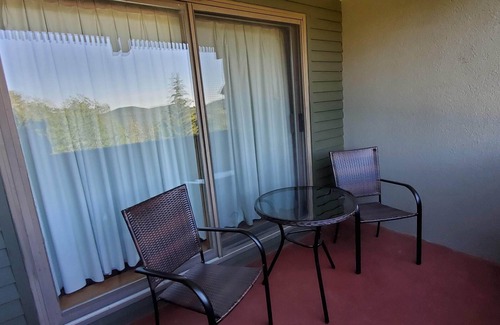We have 2 brand new pull-out sofa beds in the living room, one is a queen size pull-out and the other is a full size pull-out installed in 4/2022. The living room has a gas fireplace looking out at beautiful mountain views through a big bay window. There is a covered balcony looking at the same mountain view and is accessible from the living room and bedroom. The condo can sleep up to 4. Purchased ULTRA comfortable memory foam mattresses for the pull-outs - queen size purchased 12/20 and the full size was purchased 4/22.